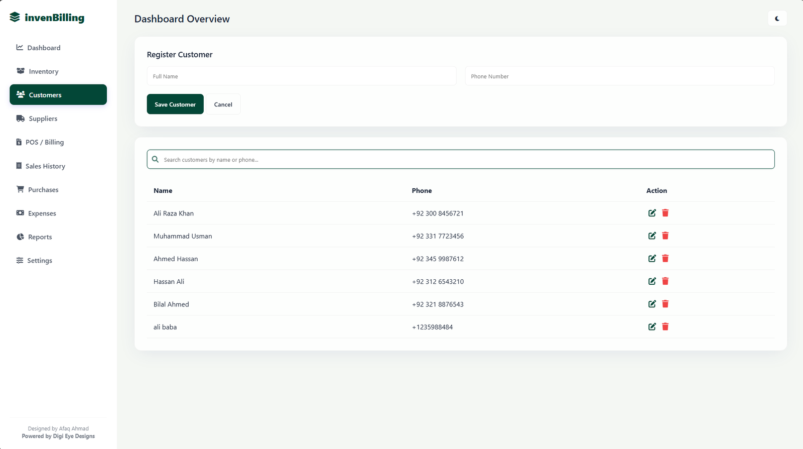 Main walk-in customers ka data properly manage nahi kar pa rahi thi. Ab har customer ki history saved hai aur repeat customers ko track karna easy ho gaya hai. Invoice design bhi professional lagta hai.